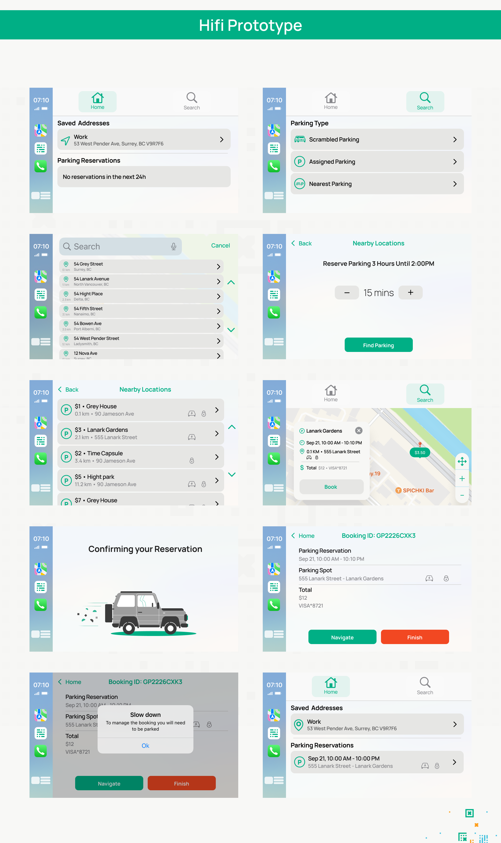 Employing a user-centered approach that encompassed Empathize, Define, Ideate, Prototype, and Test stages, the design journey unfolded. The process was driven by empathy and validation, leveraging comprehensive research into past surveys and parking-related studies. A unique challenge was addressing offline access, ensuring users could access vital information even without consistent network connectivity.