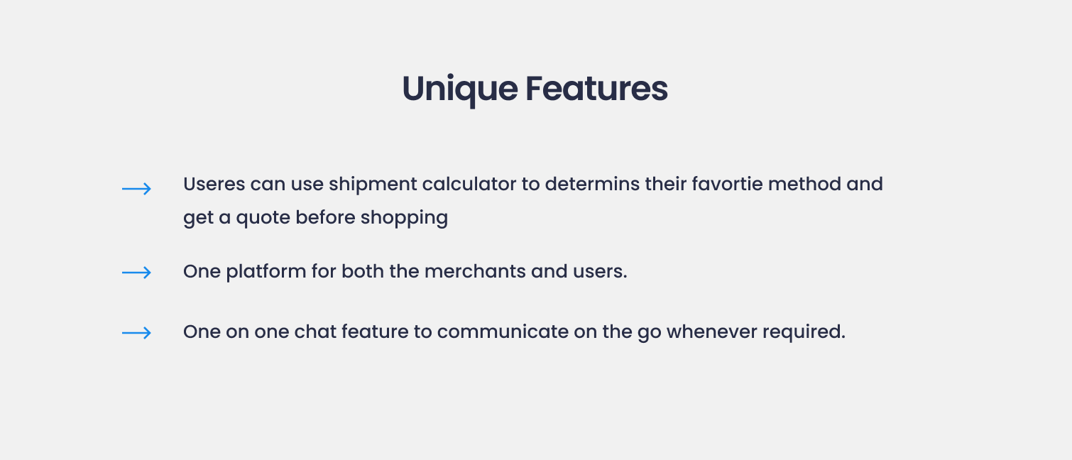 Enable Convenient and Reliable Shipping: WTM aims to facilitate a seamless shipping experience for users by providing accurate cost estimations, transparent package tracking, and leveraging trusted Delo partners for pickup and delivery. The goal is to eliminate the uncertainties and challenges associated with shipping products from different countries, making it a convenient and reliable process.